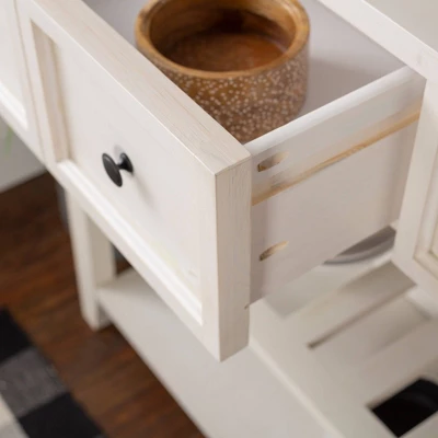 Treat yourself to the ultimate gift of versatile style with Saracina Home’s Solid Wood Two Drawer Buffet. Want a coastal sideboard? Pop on some nautical themed décor and let the middle, slatted shelf hold all your beach towels and hats. Not a fan of coastal vibes, but prefer sophistication instead? Use this sideboard as a dining room buffet and fill the solid pine frame with your best china, wines, and display plates. Want a farmhouse look instead? and hate those first two suggestions ? Simply put this buffet behind your sofa and watch it transform into a cottage-cozy credenza, perfect for displaying all your family portraits. There’s simply nothing this two-drawer sideboard won’t do for you.